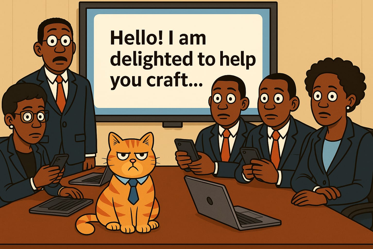 Jane whispered, “Sir, this entire 40-slide deck is in AI’s polite voice.”